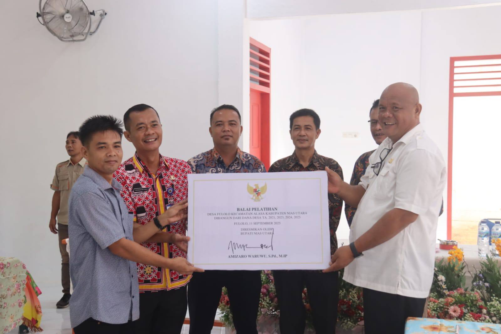 Bupati Nias Utara Amizaro Waruwu, S.Pd, MIP didampingi Sekda, Asisten Perekonomian dan Pembangunan serta beberapa Kepala Perangkat Daerah melaksanakan Peresmian Balai Pelatihan di Desa Fulolo Kecamatan Alasa.